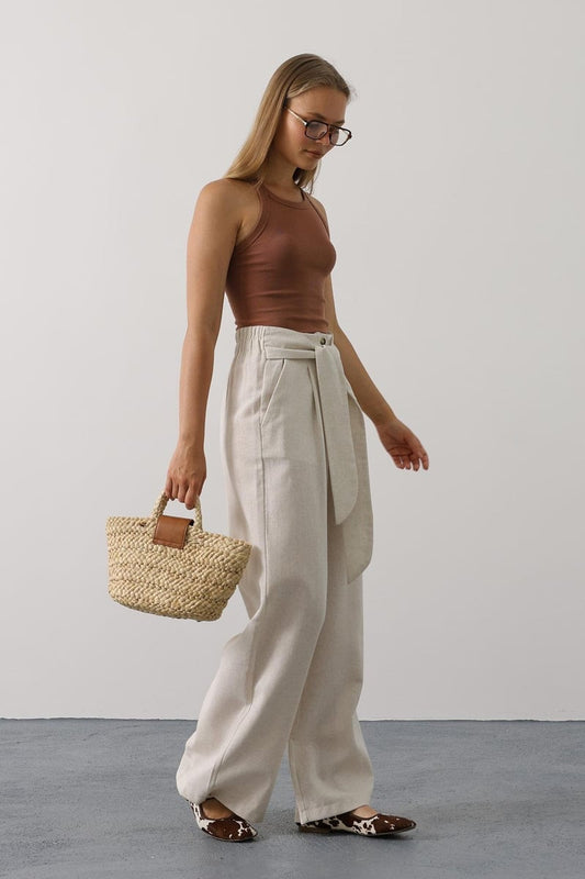 Kuşak Detaylı Palazzo Pantolon